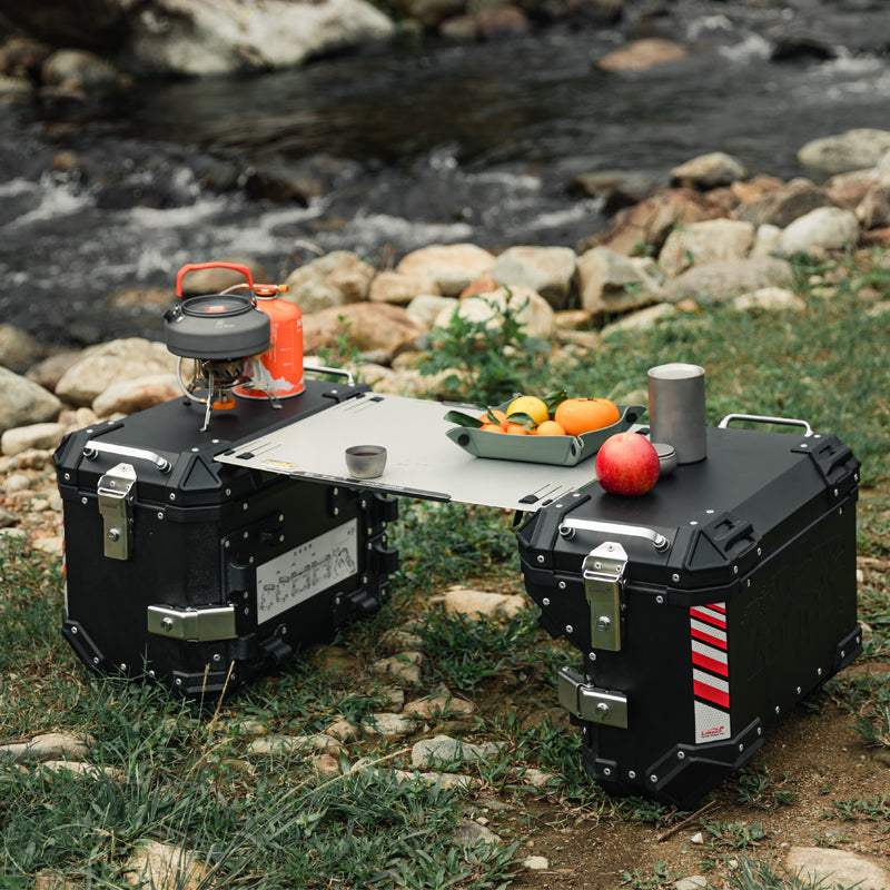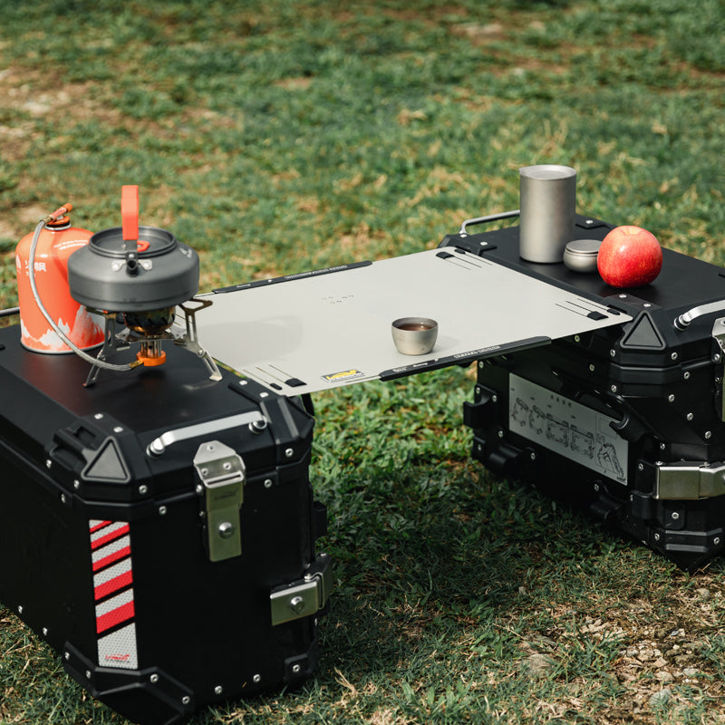 User friendly design: The outdoor folding table board on the motorcycle side box provides convenience for motorcycle travelers to engage in activities such as brewing tea and picnics during rest, expanding the space for placement and meeting the user's demand for travel comfort.